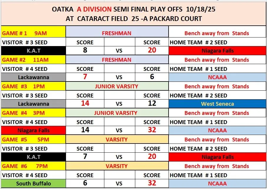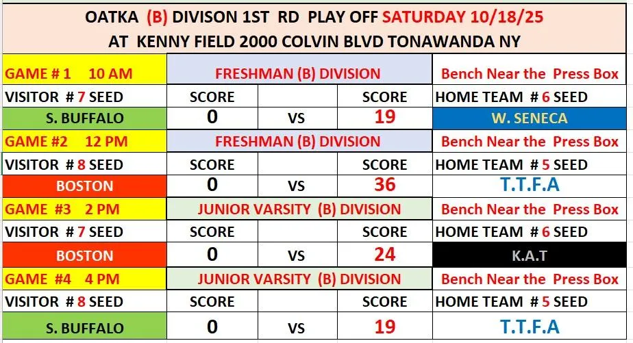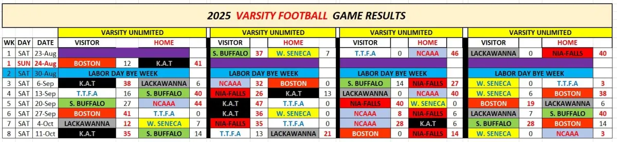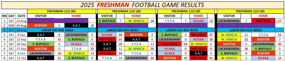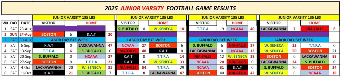 2025 JUNIOR VARSITY FOOTBALL GAME RESULTS