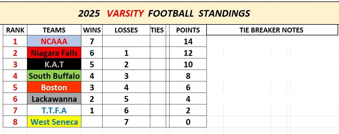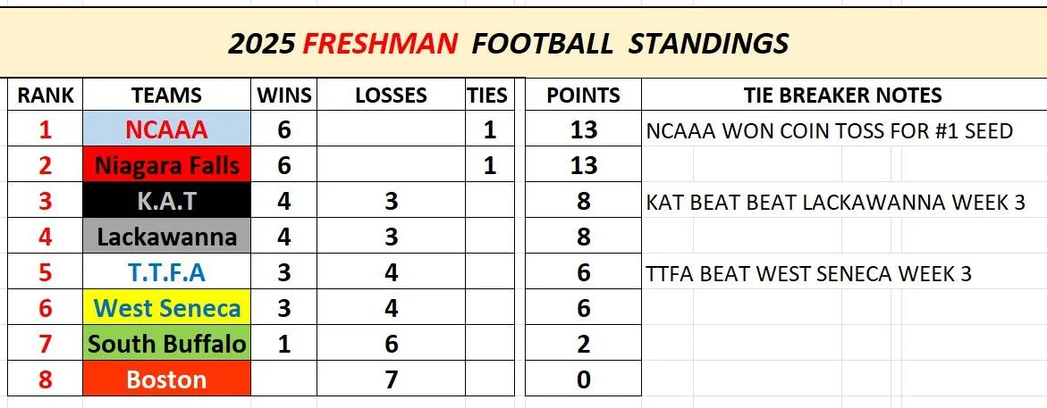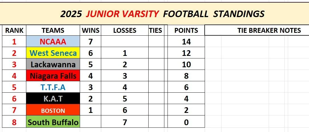 2025 JUNIOR VARSITY FOOTBALL STANDINGS